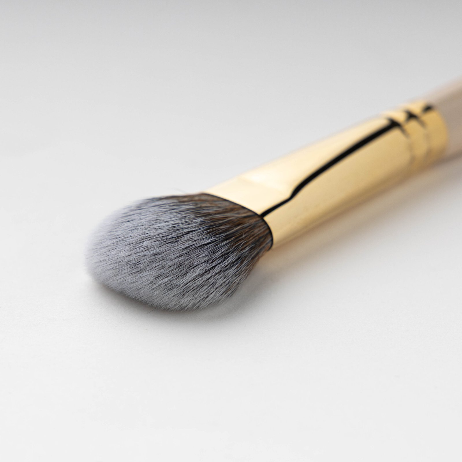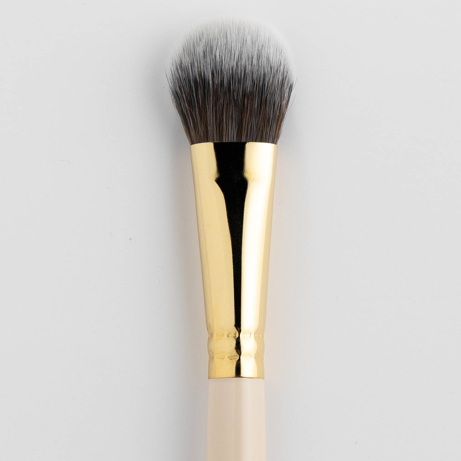 Διαθέτει ελαφρώς στρογγυλή άκρη, ενώ το φουντωτό και ελαφρώς πεπλατυσμένο σχήμα του εξασφαλίζει ομοιόμορφη κατανομή προϊόντος. Προσαρμόζεται άψογα σε όλες τις υγρές και κρεμώδεις υφές, προσφέροντας ακρίβεια στην εφαρμογή.